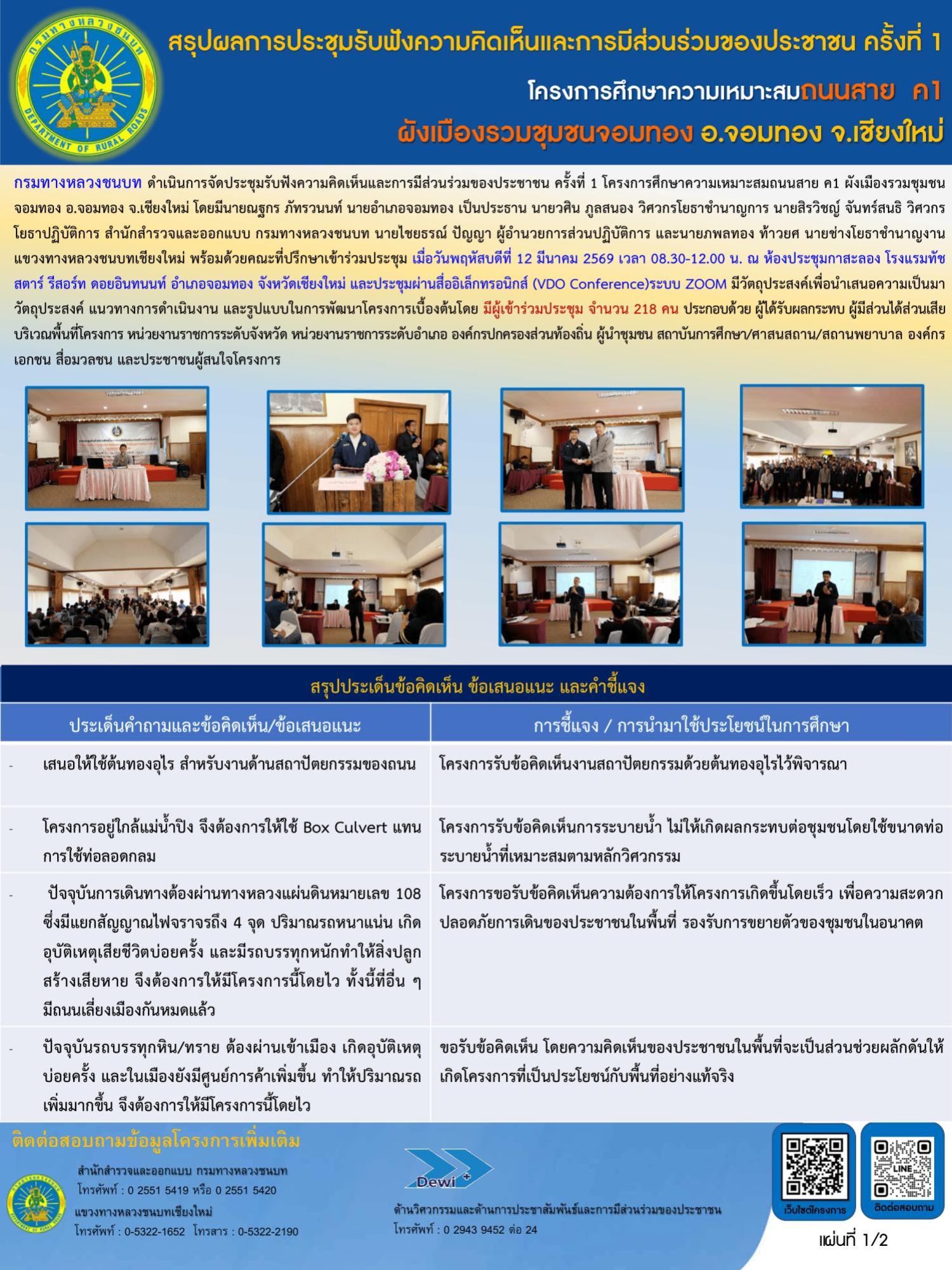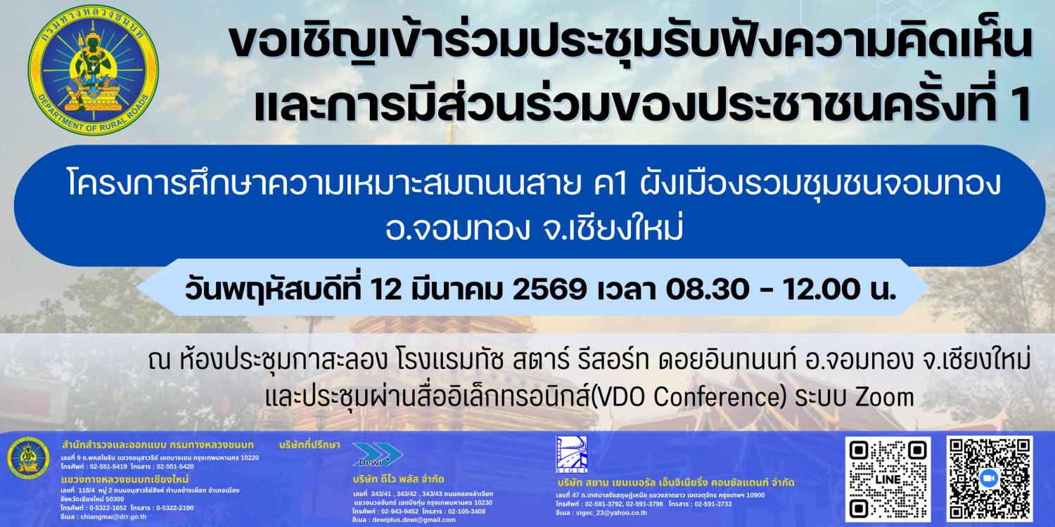 โครงการศึกษาความเหมาะสมถนนสาย ค1 ผังเมืองรวมชุมชนจอมทอง อ.จอมทอง จ. เชียงใหม่